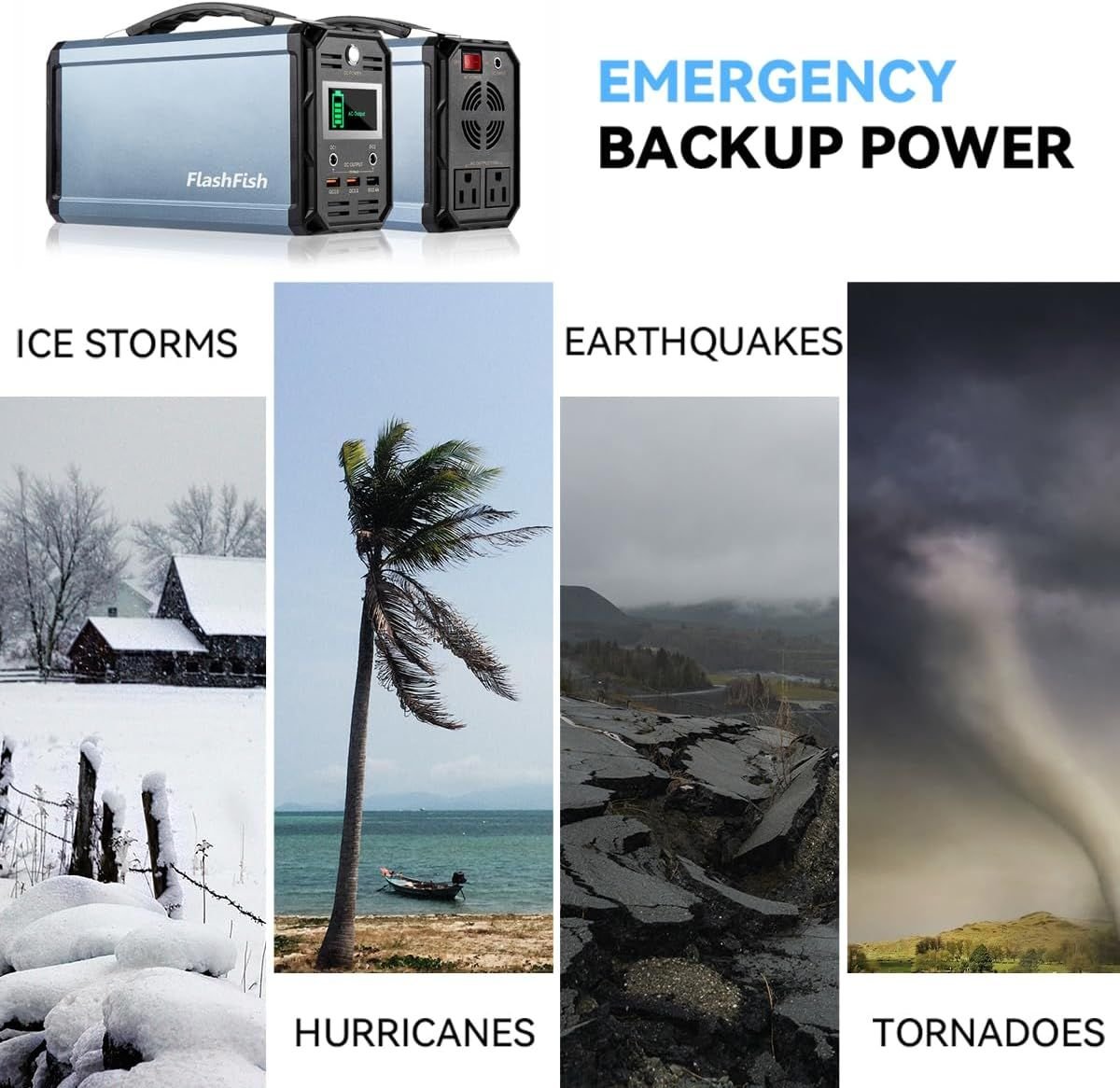 *Safety Warranty: Built-in multi safety protections like short-circuit protection, low-voltage protection, overheat protection, lock-on protection, over-voltage protection and over-current protection. THE LABEL INDICATED ON THE ITEM SHOWS 20Ah (20000mAh), PLEASE KINDLY NOTE THAT THIS IS NOT THE TOTAL CAPACITY. THE 300W SOLAR GENERATOR BUILDS INTO 3 LITHIUM BATTERIES, EACH ONE IS 20000mAh, SO THE TOTAL CAPACITY OF FLASHFISH G300 IS 60000mAh.