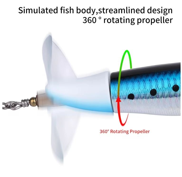 [ 360°Rotation ]360 degree rotating lure bait splashes on water and attract offensive fish.