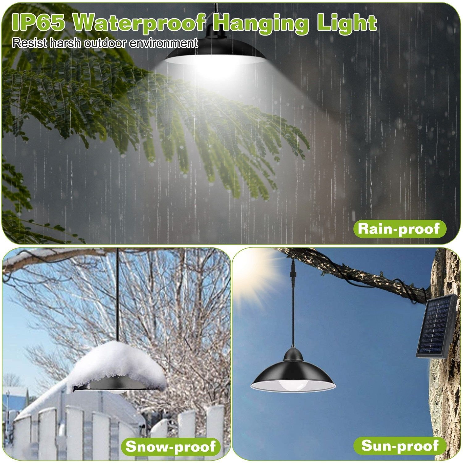 **IP65 Waterproof*:Featuring corrosion-resistant ABS materials; protected by the IP65 waterproof; solar powered pendant light is a good choice both your indoor and outdoor in all weather conditions like rain; wind; snow; frost.