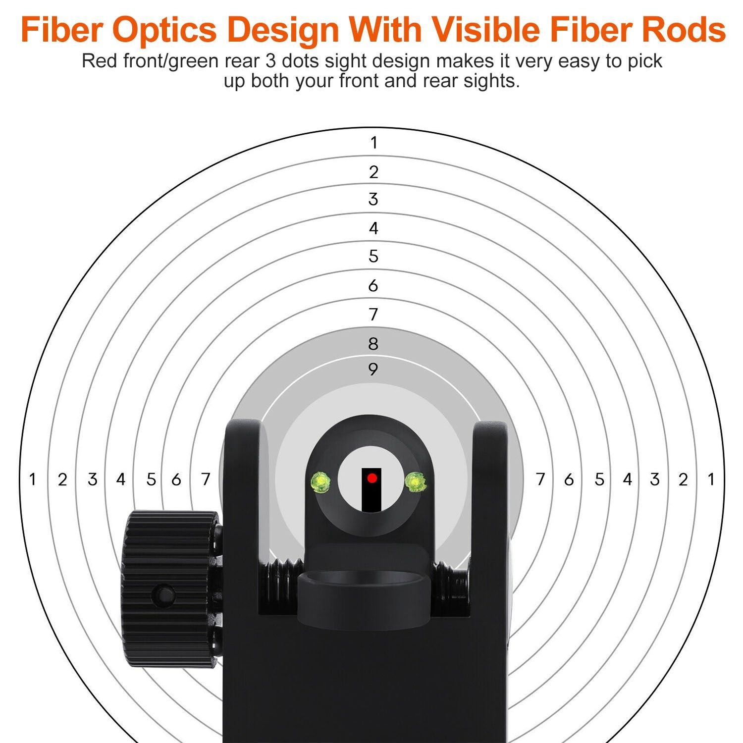 *Fiber Optics Design*:Designed with visible front sight with red dot and rear sight with 2 green dots; provides the brightest aiming points in low-light conditions; and makes it very easy to pick up both your front and rear sights.