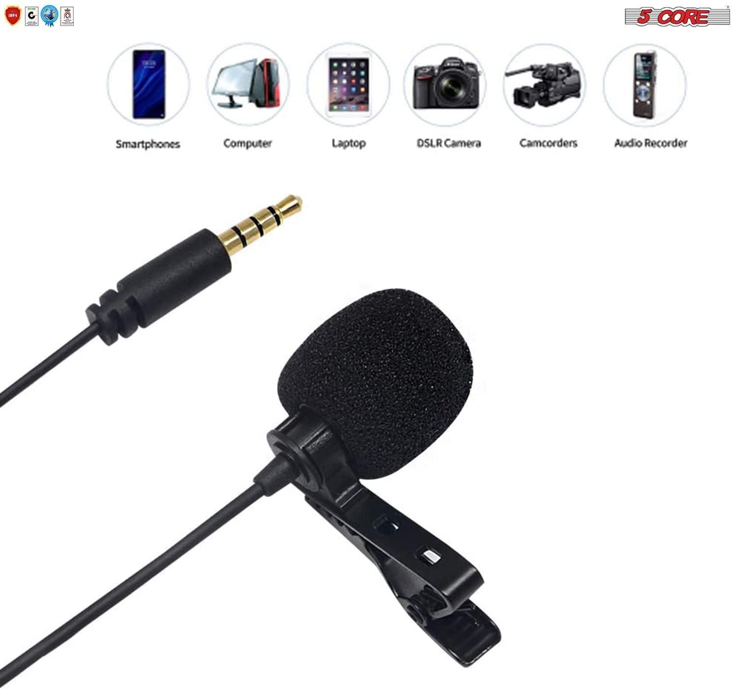 5 Core Professional Omnidirectional Lavalier Microphone 3.5mm Clip-On Lapel Mic for Smartphone DSLR Camera PC Interview Video Camcorders Audio Recorde