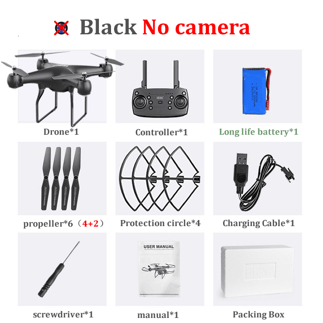 Function:Up / Down; forward / backward; left / right turn / left / right fly / high hover / 360 degree flip; headless mode / one button return; speed adjustment / phone operation / voice / flight operation Track / video camera / emergency stop / electric adjustment camera