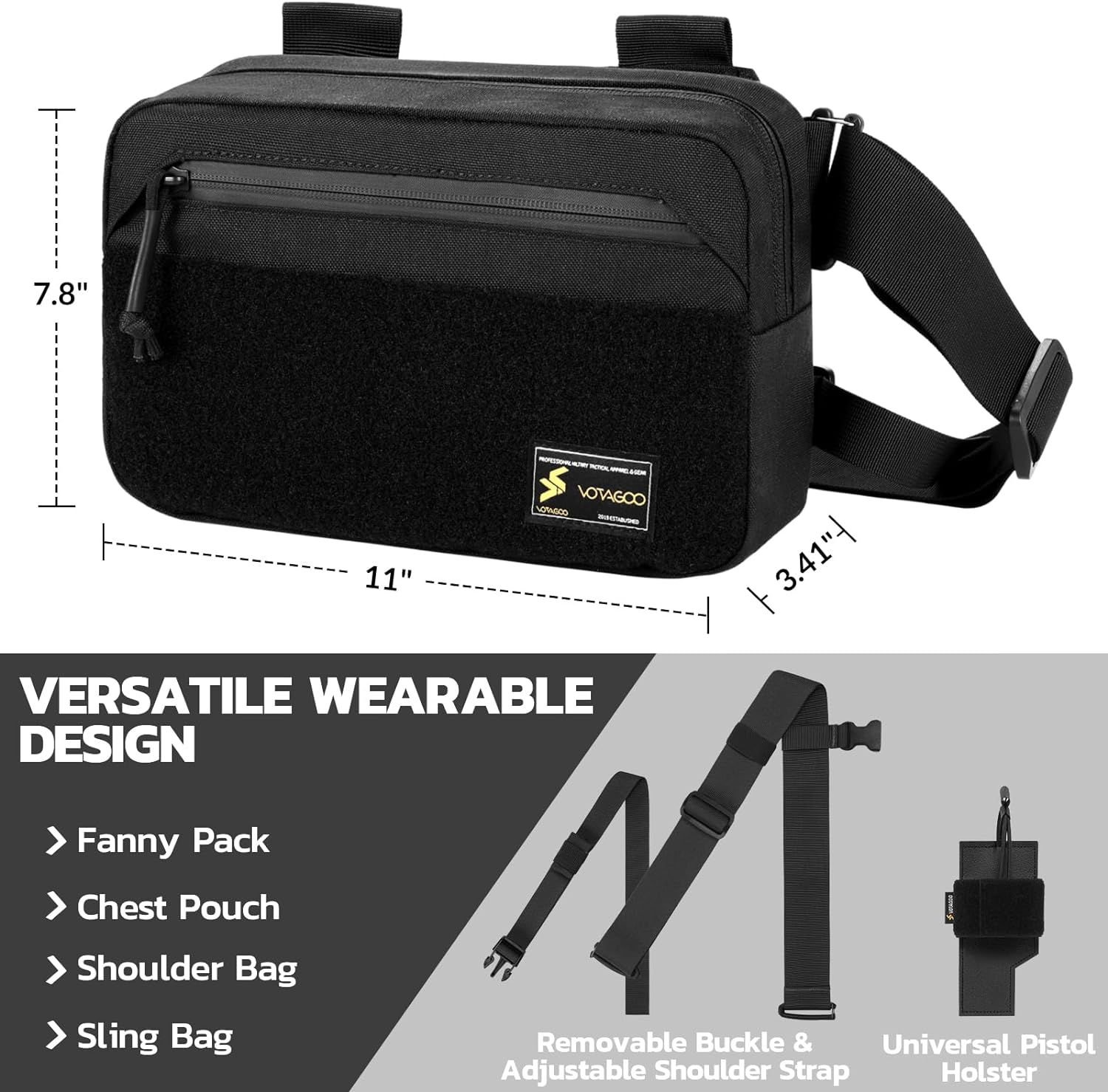 ️PREMIUM MATERIALS- The VOTAGOO combat fanny pack is well-made from water-resistant 1000D nylon and featuring a robust reinforced buckle. This rugged and durable design ensures optimal protection and reliability for all your outdoor adventures.