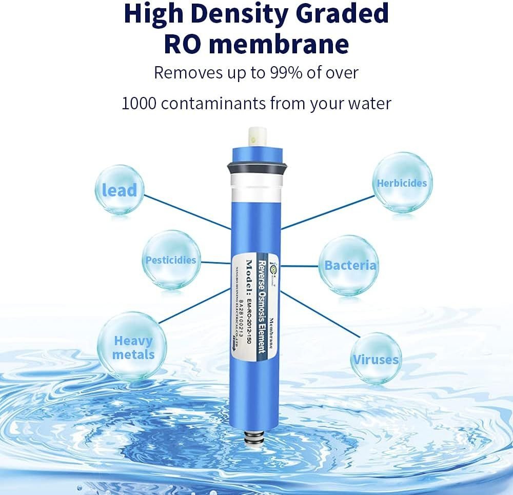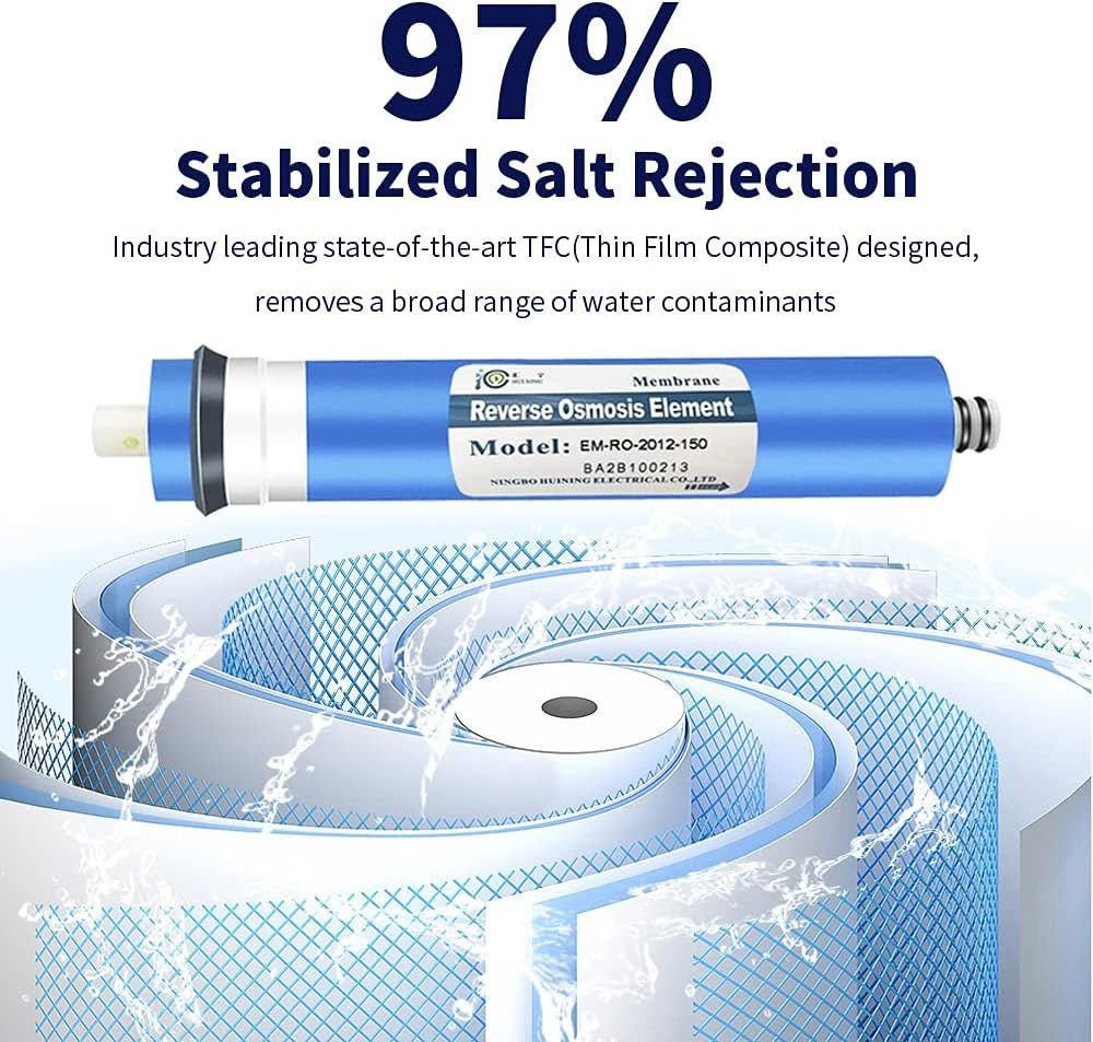 RO membrane elements,NSF/ANSI Standard 58 certified, have a high permeated flow while keeping a 97% TDS removal rate It can efficiently remove contaminants like heavy metals including primary fluoride, calcium, magnesium, lead, colloids, chromium, and nitrates, as well as organic, rubber mass, harmful minerals, and another soluble salt from water.