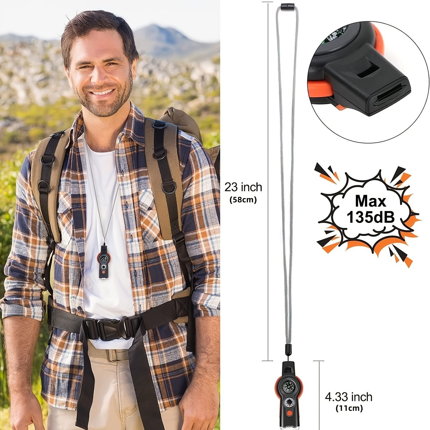 7-in-1 Multifunctional Outdoor Emergency Survival Whistle With Lanyard For Kayaking; Boating; Hiking; Camping; Climbing; Hunting; Fishing; Rescue Sign